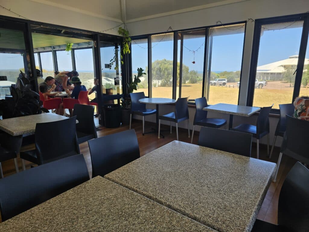 There’s a casual dining area with ocean view for those wanting to devour their baked goodies super fresh.