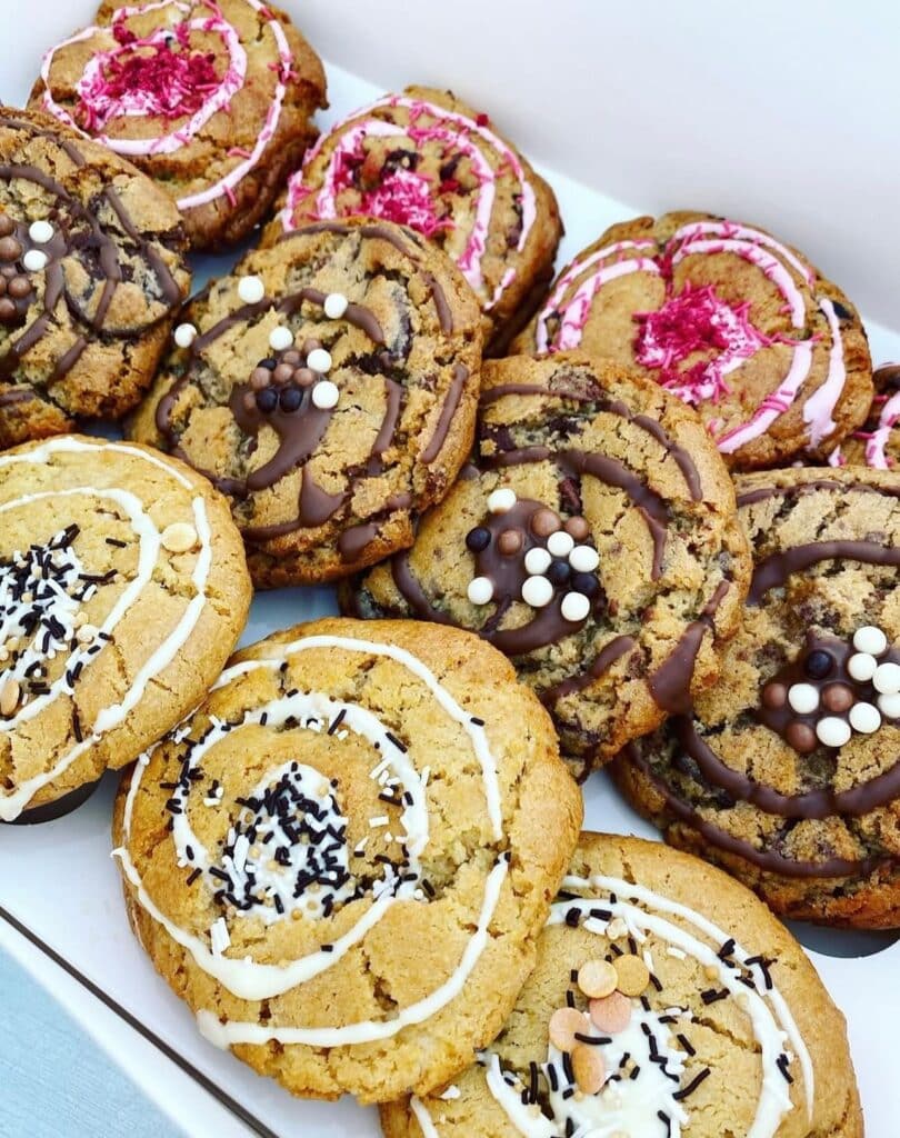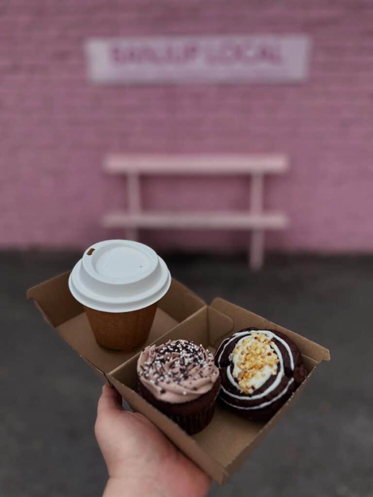 Inside the shopfront youโre greeted by trays of beautifully decorated cupcakes and cookies, all baked from scratch using real ingredients and made fresh daily. The cabinet changes, but you can expect an ever-tempting range of flavours, plus other baked goodies and barista-made coffee.