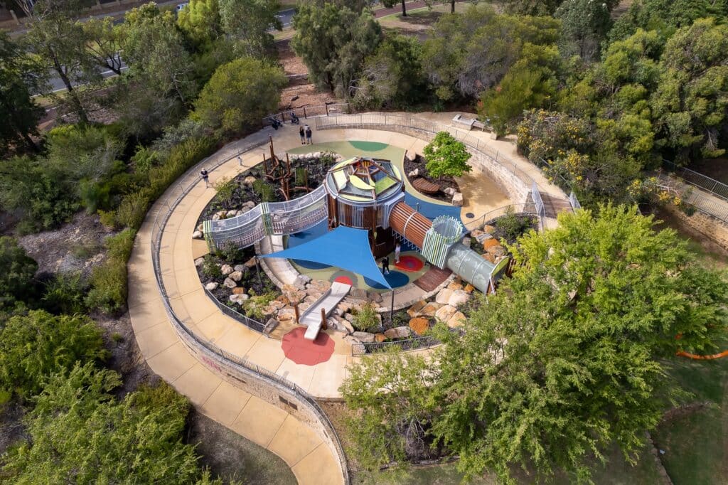 Spread across a massive, leafy site, Kwinana Adventure Park is a destination Playground in every sense. The $5.2 million park combines water and nature play, climbing structures, swings, a maze and inclusive equipment into an 11,000sqm wonderland beneath shady mature trees. Families can easily spend the day here, with plenty of seating, picnic areas, and nearby facilities.