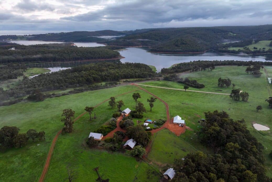 Bluehills Farmstay is one of those places that makes getting away with kids feel easy. Tucked in the hills just outside Harvey, around a 90โminute drive from Perth, itโs close enough for a stressโfree road trip with little ones, but far enough that you really feel like youโve escaped the city. Perched above Harvey Dam with sweeping views of the Darling Scarp, the property feels wonderfully peaceful, yet itโs only a short drive from town and local attractions like Harvey Dam, the Big Orange and Stirling Gardens.