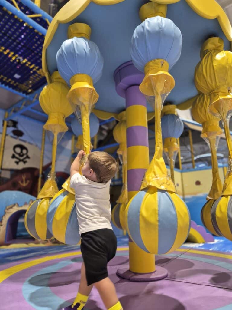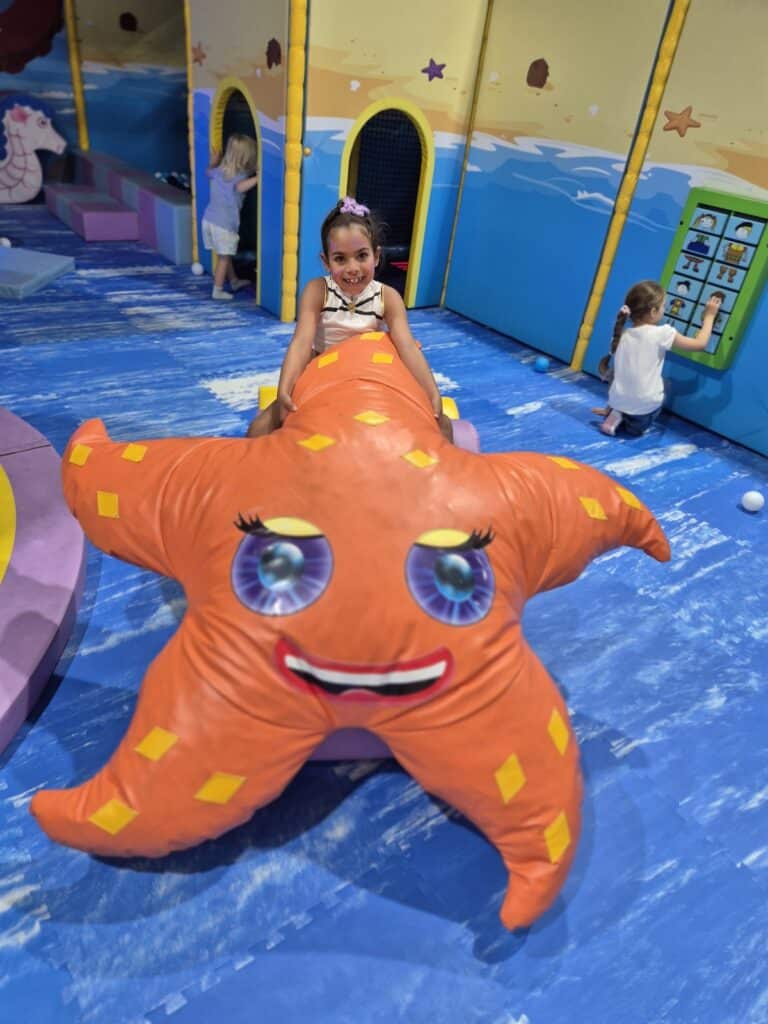 There are also 4D creatures and “heavy work” style pieces that let little bodies push, pull and climb in a way that feels satisfying without being overwhelming. These elements aren’t just fun; they naturally support fine motor development, language building through shared play, early numeracy concepts like counting and shapes, spatial awareness and the all‑important deconstruct–reconstruct phase of play. The layout and size of the zone mean younger children can explore at their own pace, without being bowled over by bigger kids.