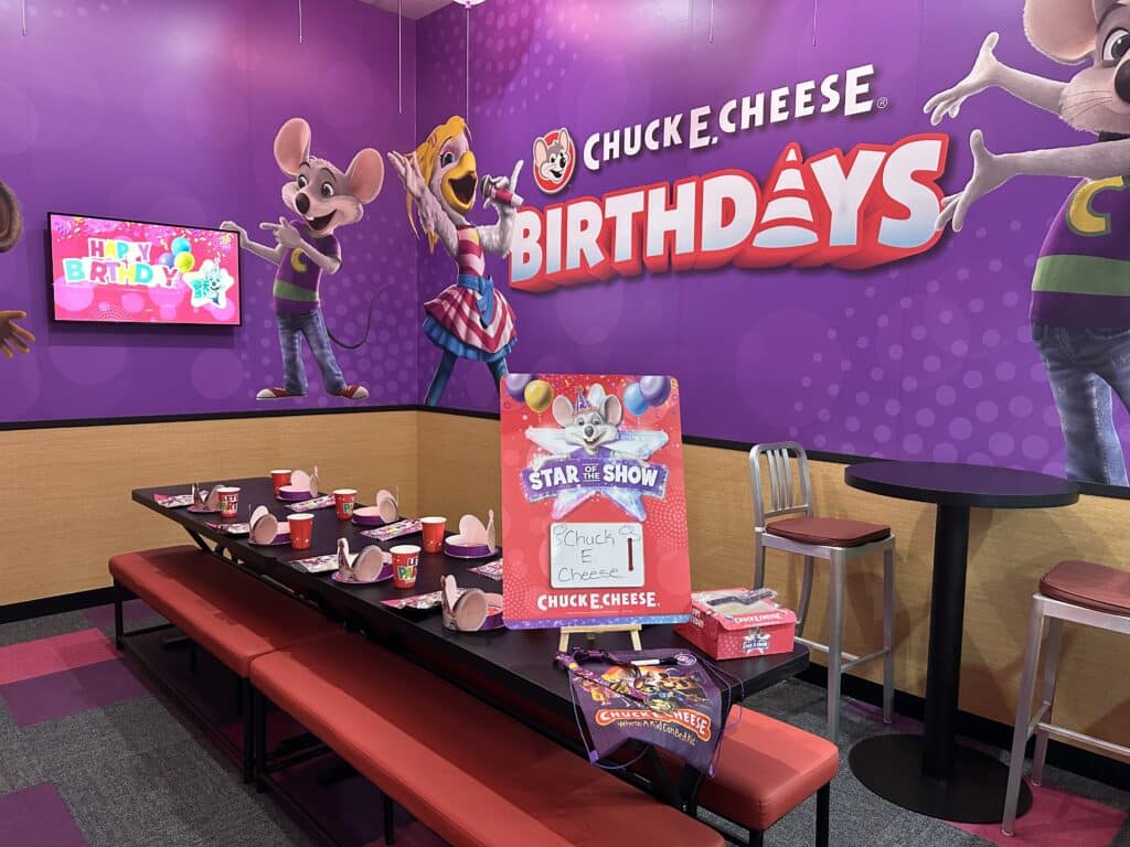 Chuck E. Cheese parties are next-level, with themed VIP rooms, All You Can Play access, and the chance for Chuck E. himself to join the celebrations!