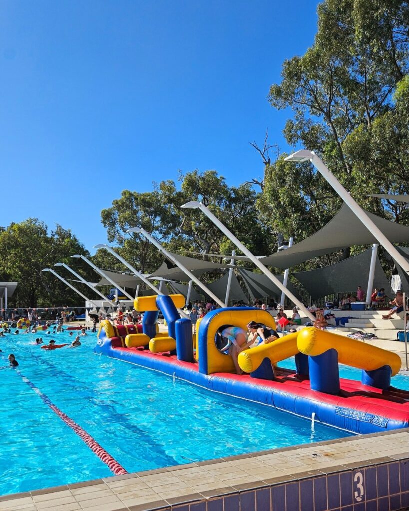 Around the pool thereโs shaded grass for picnics, some sun lounges to relax on, barbecues for a sausage sizzle, and separate outdoor toilets and changerooms so you donโt have to duck back inside once youโre set up.