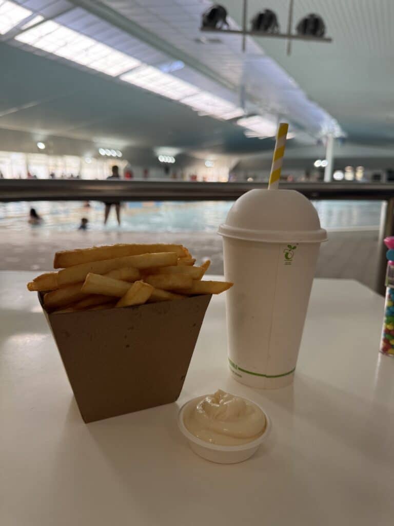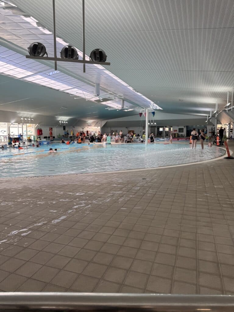 Inside, families will appreciate the practical touches that make visits smoother: lockers for valuables, plenty of toilets and changerooms, and an onโsite cafรฉ overlooking the pool area. The cafรฉ serves simple, kidโfriendly options like toasties, sausage rolls, chips, muffins, cakes and sandwiches, along with hot drinks, cold drinks and ice creams. There are tables, chairs and highchairs, so you can refuel before heading back in for another swim or drying off to go home.