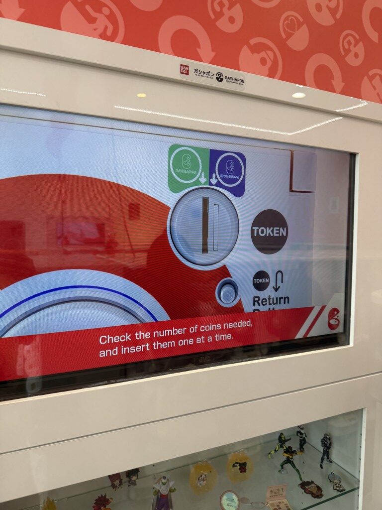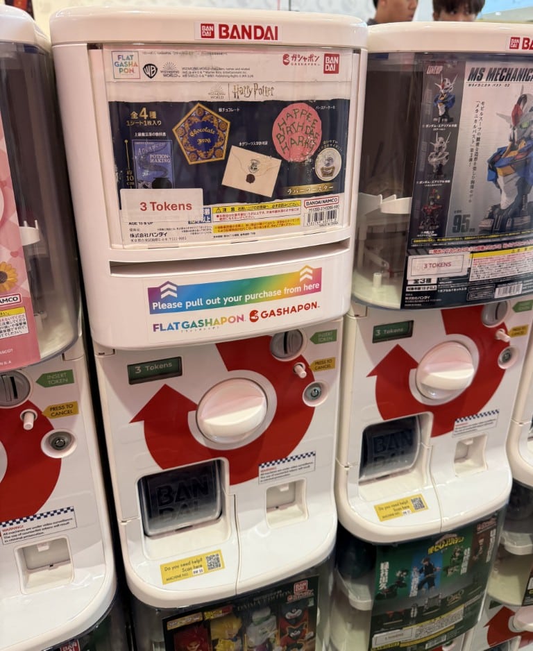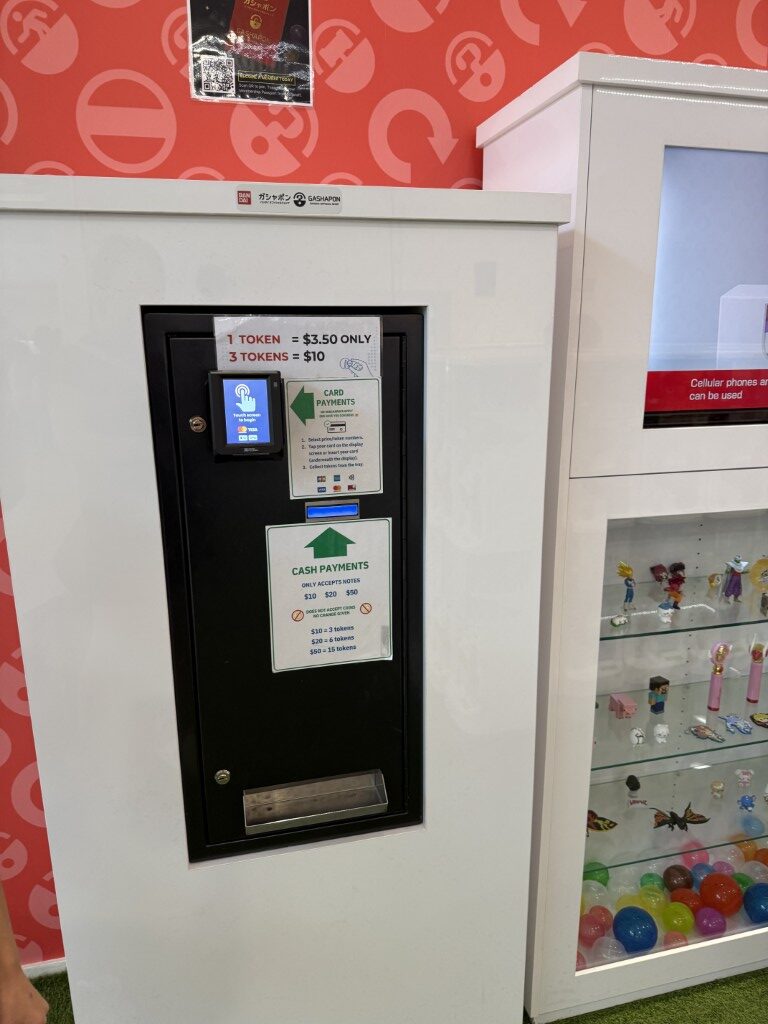 Getting started is simple, even if youโ€™ve never tried gashapon before. A token machine inside the shop accepts both cash and card, so you donโ€™t have to worry about having coins on you. Prices vary slightly by series, but most machines require three tokens (around $10), with some starting at two tokens and others at four for premium sets. Once youโ€™ve got your tokens, just choose your machine, follow the on-screen or printed prompts, insert the tokens and turn the handle to release your capsule.
