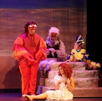 There’s also plenty of humour sprinkled throughout the show, especially from the side characters, which keeps both adults and children entertained. Each bringing their own flavour to the stage, the audience will love the lively and well-coordinated performances of Clay Darius as Sebastian, Will Basson as Scuttle, Andy Paterson as Flounder, Charles Sherrington as Prince Eric and Cathy Woodhouse as Ursula.