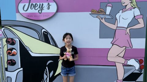 The rooftop dining play area is located just outside their outdoor seating area, which is perfect for family dining! The outdoor play area includes a popsicle stick house, boat playset, hillside slide playground with tunnel and steps.