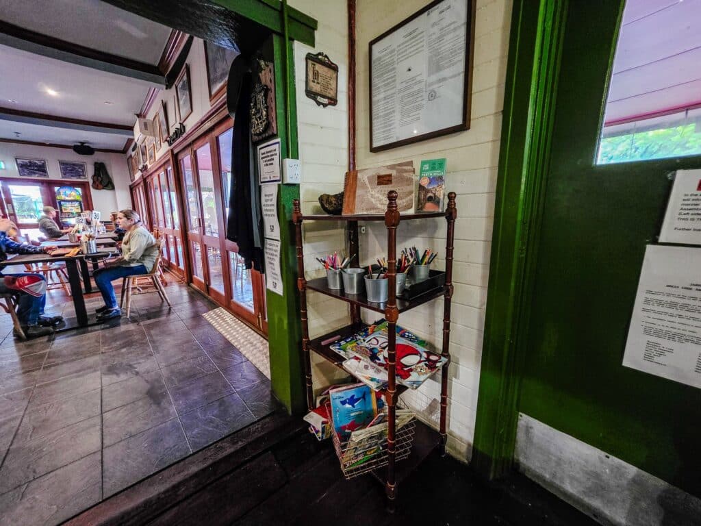 Inside, the tavern has all the cosy character youโd expect from a country pub, with a woodfire, pool table, and heated verandah dining for the cooler months. Thereโs also colouring-in and books to keep the kids entertained indoors, making it a great spot no matter the weather.