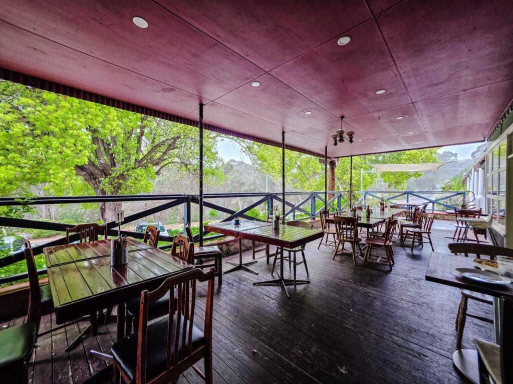 Inside, the tavern has all the cosy character youโd expect from a country pub, with a woodfire, pool table, and heated verandah dining for the cooler months. Thereโs also colouring-in and books to keep the kids entertained indoors, making it a great spot no matter the weather.