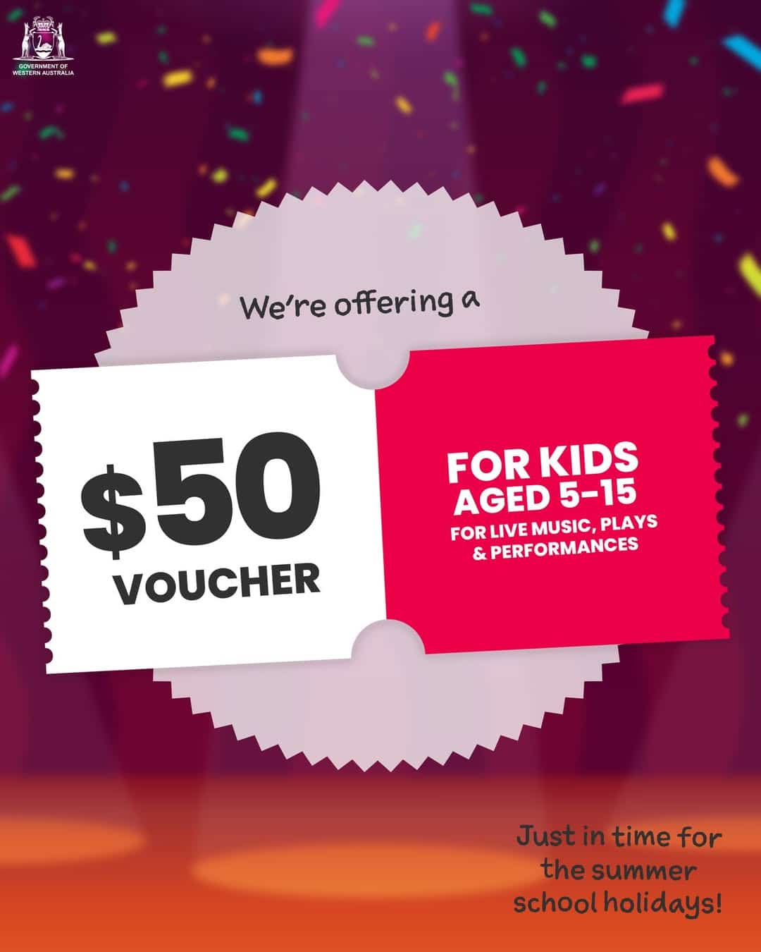 Each eligible child can receive a $50 voucher that can be used towards tickets at approved venues and providers across Western Australia.