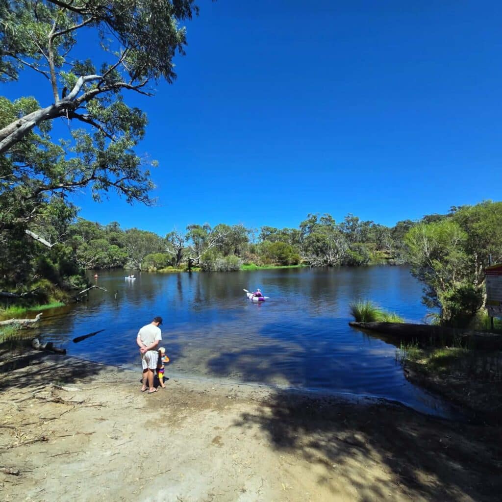 Tucked away along the banks of the Moore River, this spot feels wonderfully relaxed and low-key. As you arrive, youโ€™ll find an open area near the boat drop-off thatโ€™s perfect for setting up your base for the day. Lay out a picnic rug, set up camping chairs, and let the kids come and go between bursts of adventure and chill-out time in the shade.