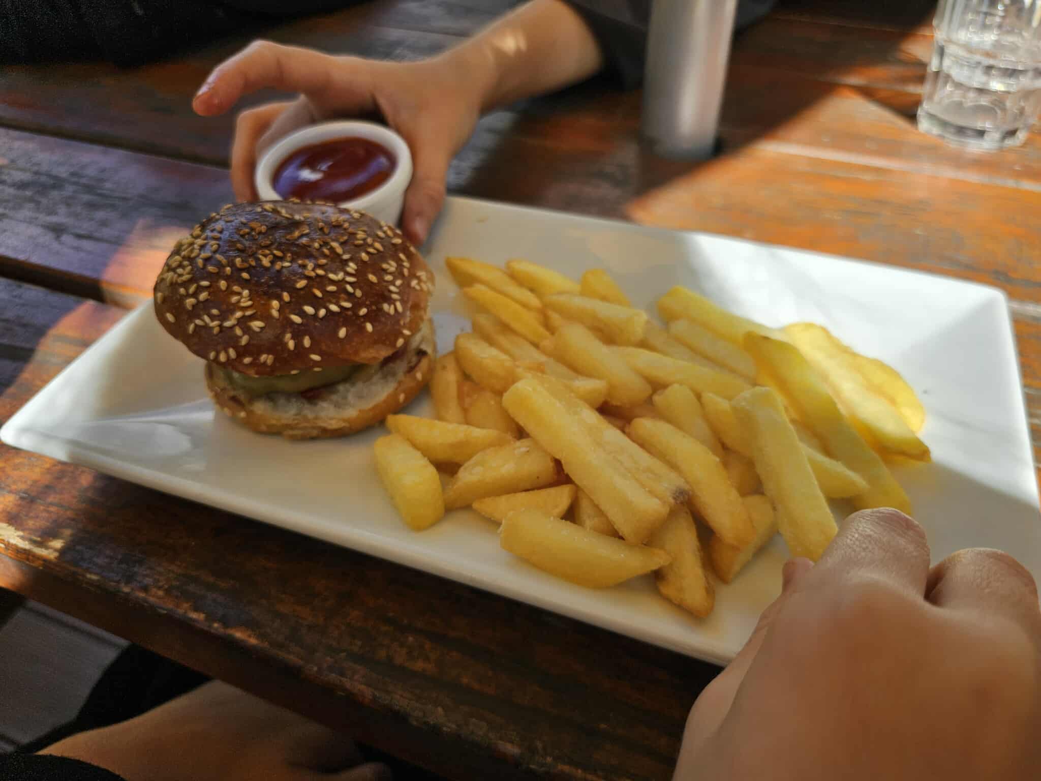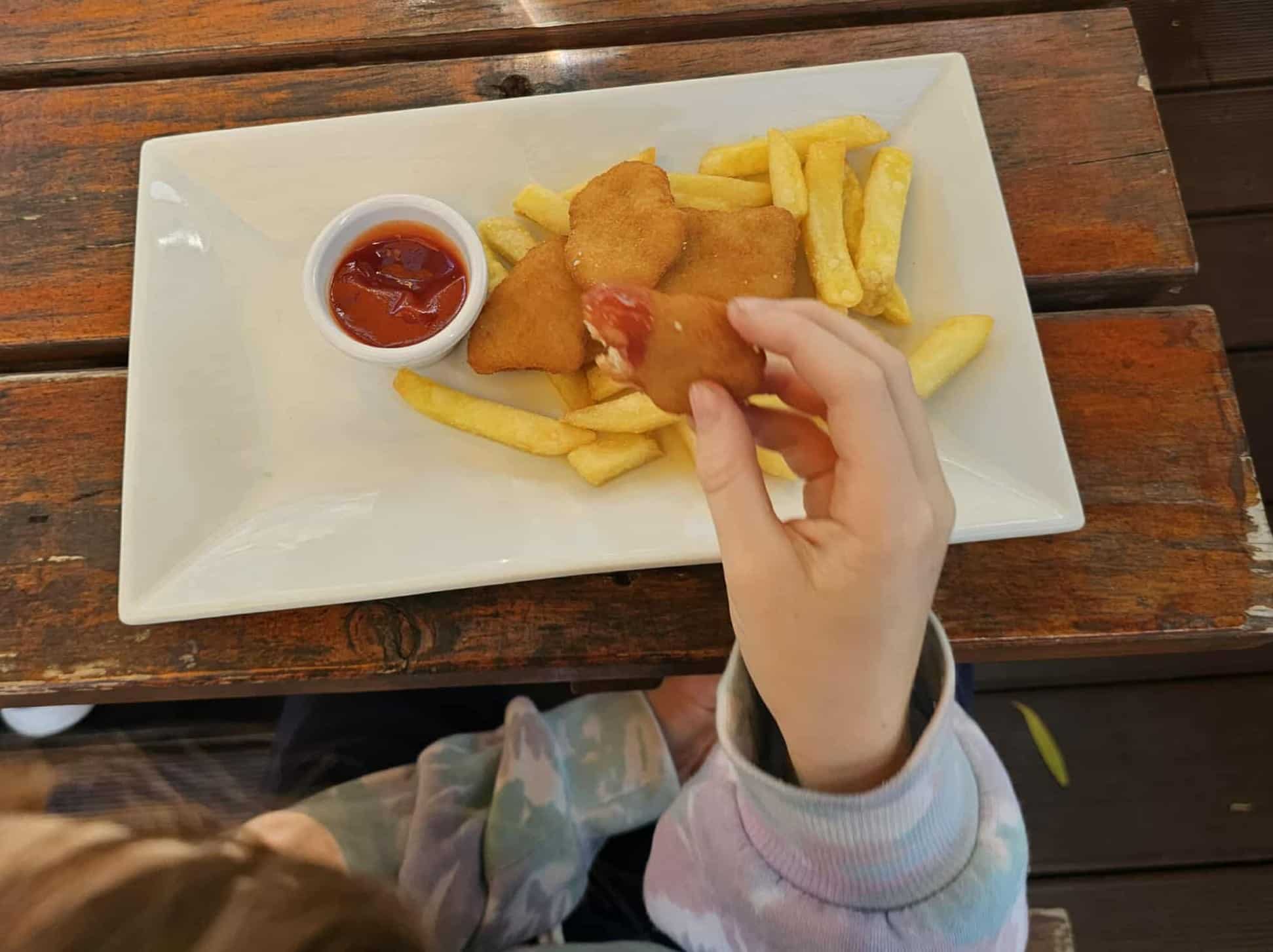 The kiddos all ordered something different – nuggets, burger, and fish.