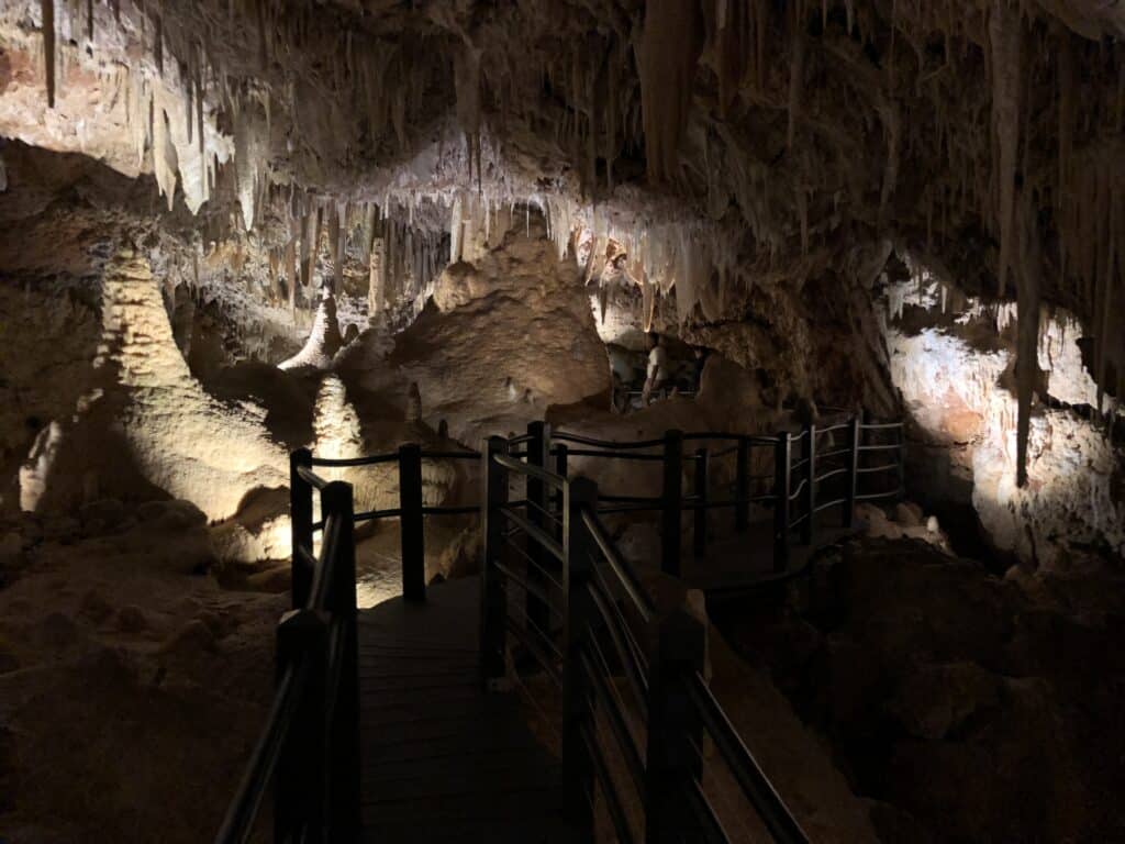 As you head deeper into the cave, staircases lead you through a mesmerising maze of stalactites, stalagmites, delicate helictites and beautifully coloured shawls that have formed over thousands of years. Children tend to be completely captivated by the way the crystals catch the light.