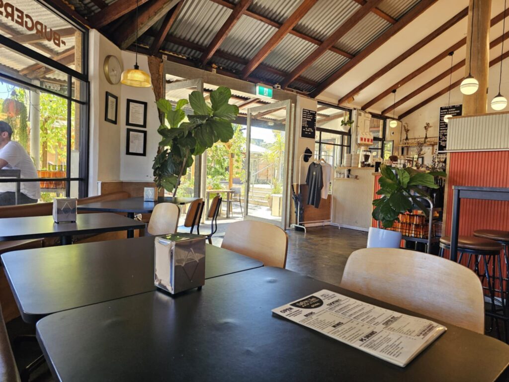 This spot may seem familiar, it was once Burger Baby, which is now south of town, next to Yahava Coffee. There’s inside and outside dining under the vines – because when in Margaret River, why not?