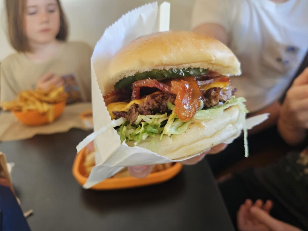 If you want something different, there’s a Typical Chicken Burger and a Buffalo Chicken Burger with more kick. For vegetarians, the Portabello Burger is a solid option that doesn’t feel like an afterthought. The Normal Caesar Salad offers a fresher pick alongside the burgers. I was tempted, but opted for the GF bacon cheeseburger, which was delicious and the bun was better than your average – IYNYN.
