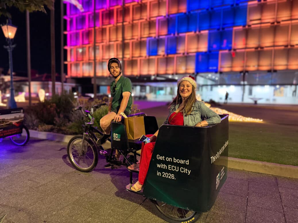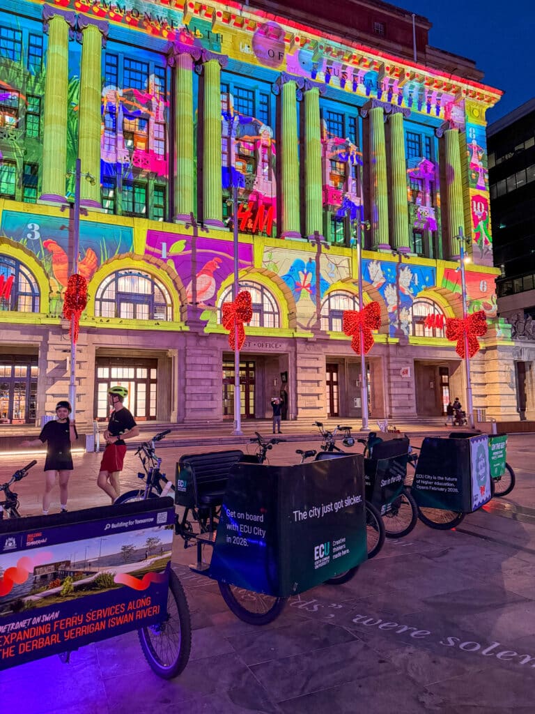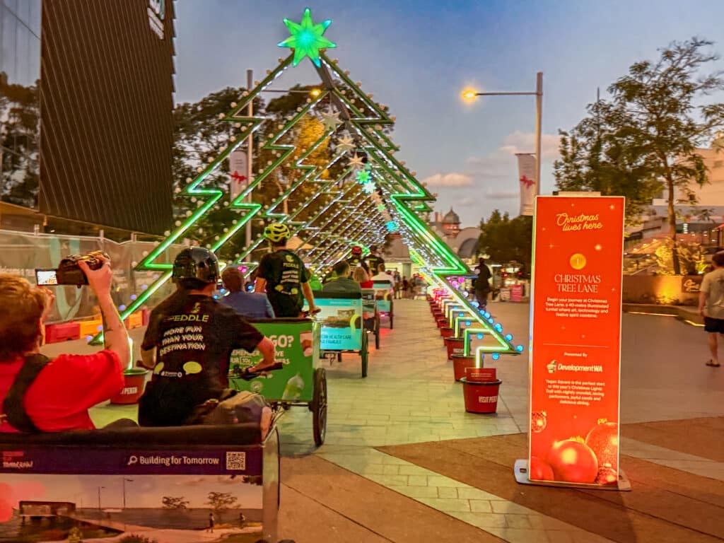 If you’ve ever tried doing the whole Christmas Lights Trail on foot with little ones, you’ll know it can feel like a marathon. Peddle Perth flips that on its head. Instead of trekking for hours, families cuddle up together in a comfy rickshaw “sleigh” as your friendly rider (your very own Christmas “reindeer”) does all the hard work.