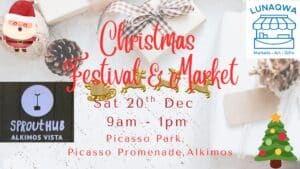 Join Lunaqwa Markets and Sprout Hub for our Christmas Festival and Markets on Sat 20th Dec from 9am till 1pm.