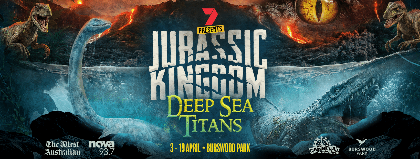 From 3–19 April 2026, Burswood Park will once again transform into a prehistoric adventure zone as Jurassic Kingdom unveils its brand-new feature experience: Deep Sea Titans – an epic expansion introducing colossal ocean predators to the dinosaur world.