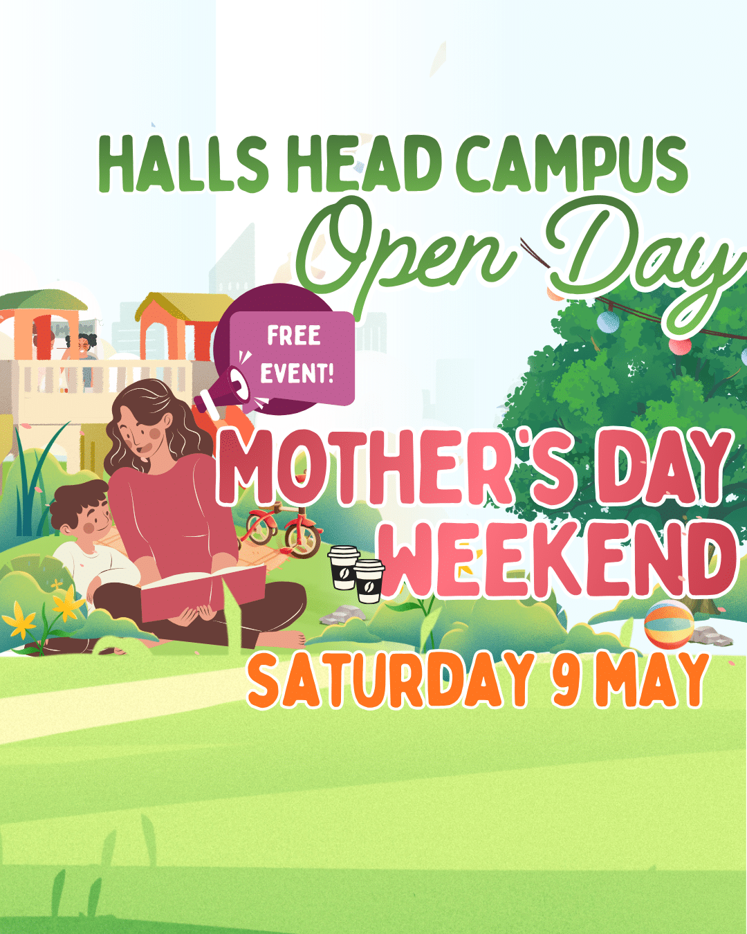Come along to our Mother’s Day Weekend Open Day at our Halls Head Campus, 15 Waxflower Vista, Halls Head