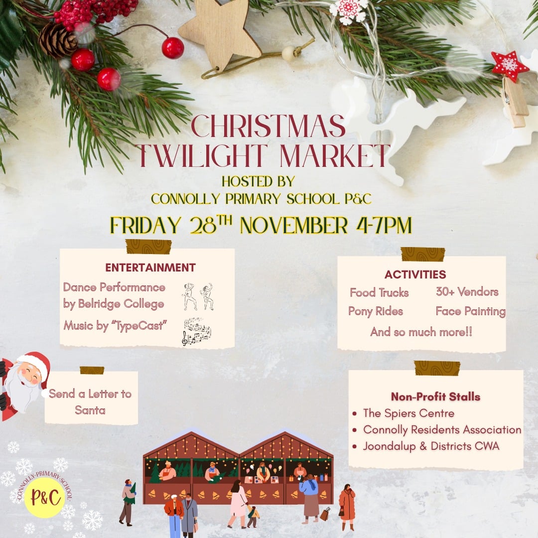 Central Walk Central Walk, Joondalup, WA, AustraliaExperience the magic of the Christmas Twilight Markets, featuring festive stalls filled with gifts, decorations, and fun for the whole family. Enjoy live entertainment, free kids activities and delicious food stalls. Santa will also be there to spread holiday cheer, so don’t forget your camera! Every Friday starting Friday 28 November-Friday 19 December from 4-8.30pm. Friday 28 November Friday 5 […]
