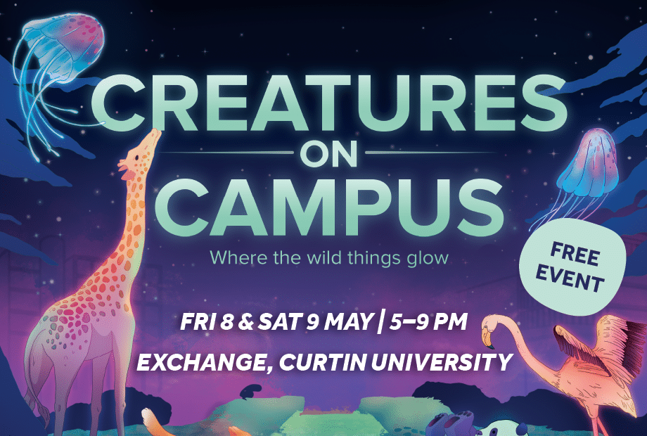 Curtin University Kent Street, Building 209, ground floor, Centre of Excellence Digital Child, Bentley, WA, AustraliaSneak into a hidden world that comes alive after dark. Where the wild things glow... Sneak into a hidden territory after dark and tiptoe among magnificent, larger-than-life creatures of land and sea as they glow to life around you. As you step into Creatures on Campus, immerse yourself in their biosphere and experience the beauty and sounds of the secret world they […]