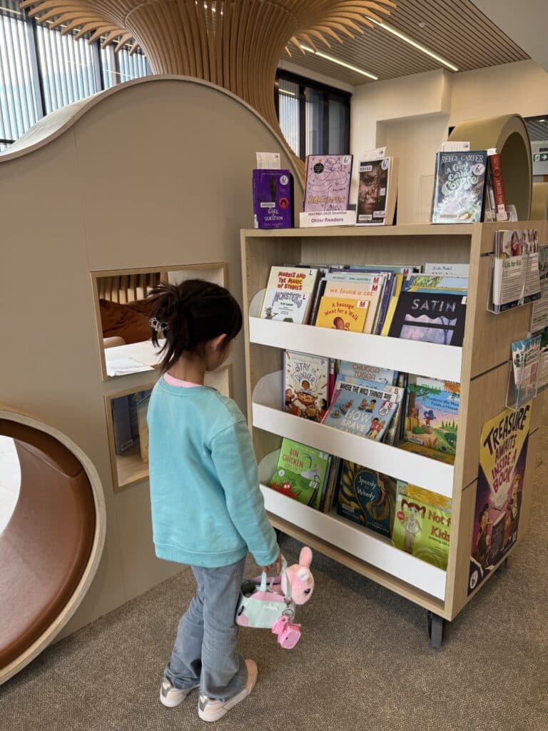 Picture books, Junior Fiction and non-fiction, and graphic novels are accessible to children within their reach.