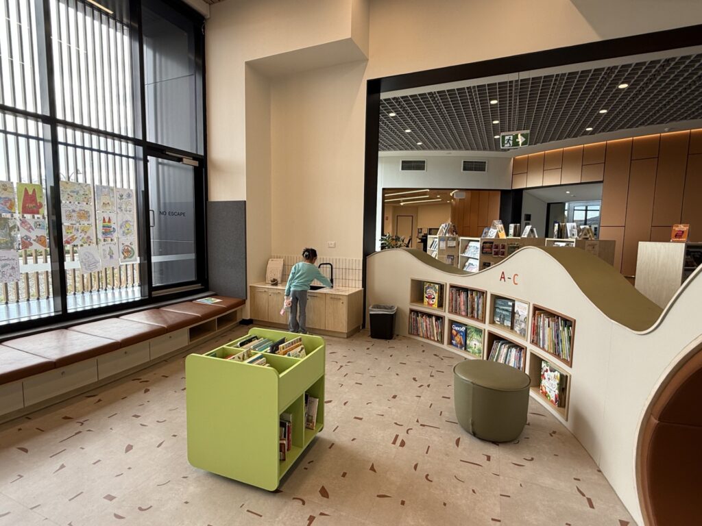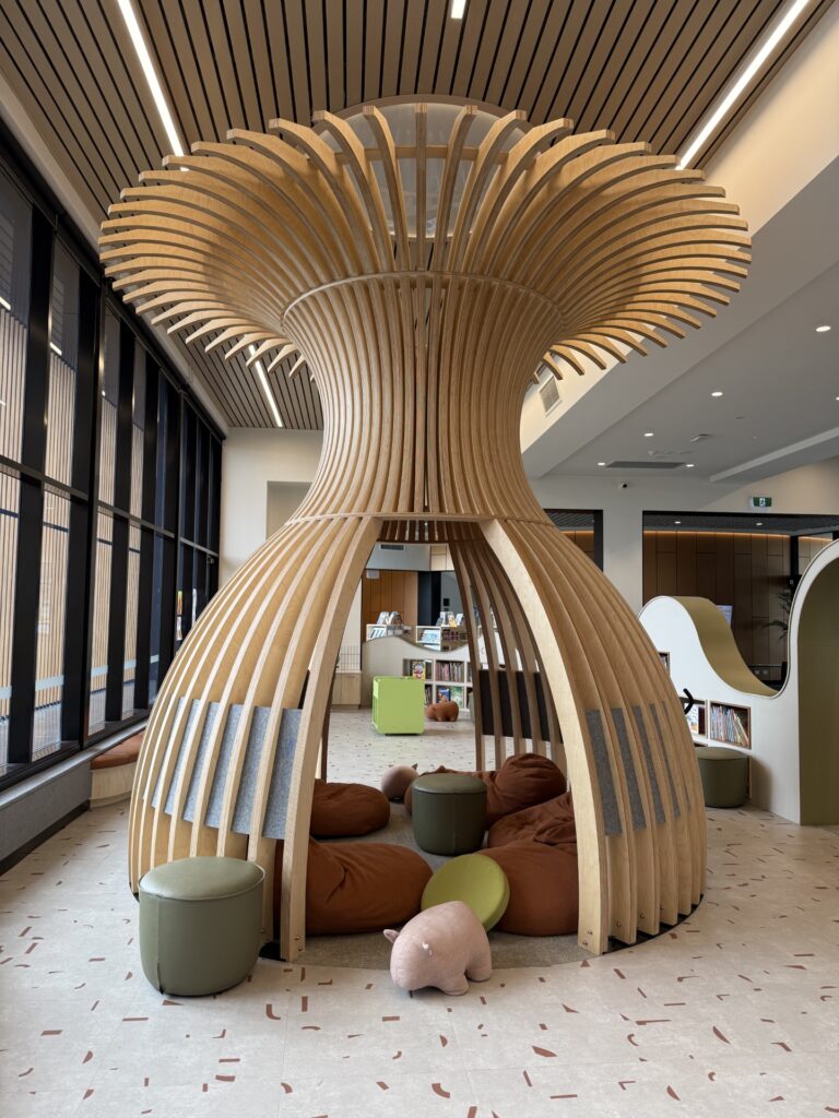 With sustainability, accessibility and adaptability design in mind, the childrenโs reading area features a spacious zone with a massive wooden tree in the centre!