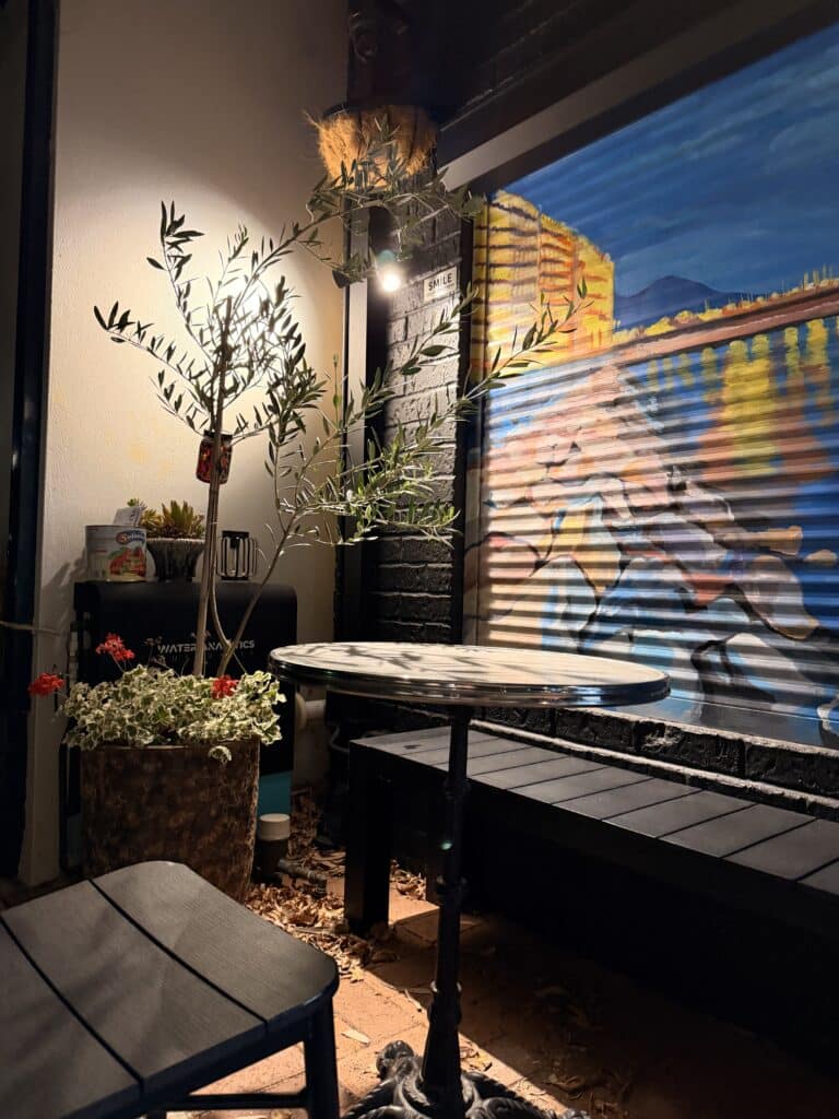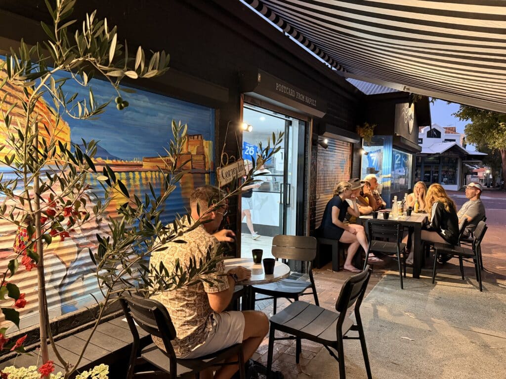 Thereโs no indoor dining here, which is part of the charm but also means itโs best enjoyed on warm evenings. Seating is alfresco only, with a small number of tables spilling onto the pavement. You canโt book, which is precisely why I wanted to keep this gem quiet โ once you fall in love with it, youโll find yourself crossing your fingers for an empty table every time you drive past. On a balmy night, the atmosphere is magic. It genuinely feels like youโre sitting on a European street corner, watching the world go by, surrounded by the hum of conversation and the occasional burst of Italian from the kitchen.