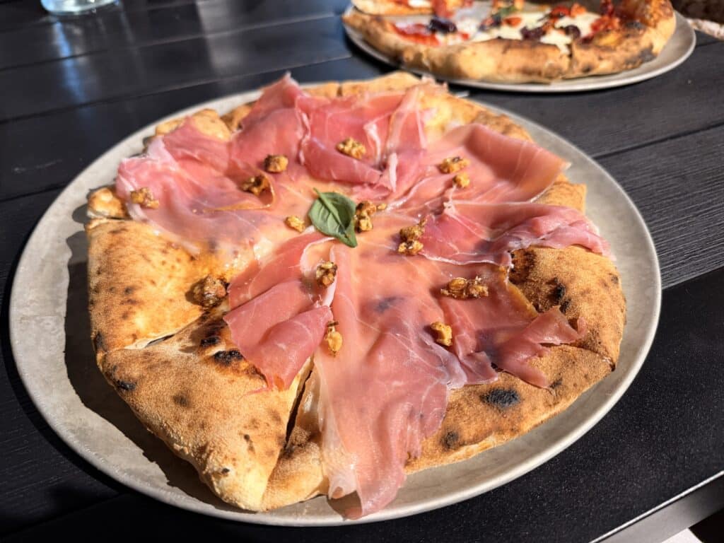 And the Principessa is pure indulgence โ it arrived piled high with prosciutto, a seriously generous amount that had us grinning before we even took the first bite. This is the kind of pizza you talk about later and start planning your next visit around.