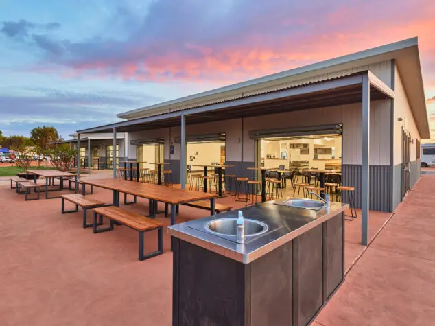 For families wanting a bit more comfort in the Exmouth heat, the cabins are a great option. The twoโbedroom selfโcontained chalets near the pool work especially well, with a queen bed in the main bedroom and bunks in the kidsโ room. Having separate bedrooms gives everyone space, and the large TV and modern fittings make evenings easy after big days out. Strong airโconditioning in the living area and bedrooms is a real bonus in summer.