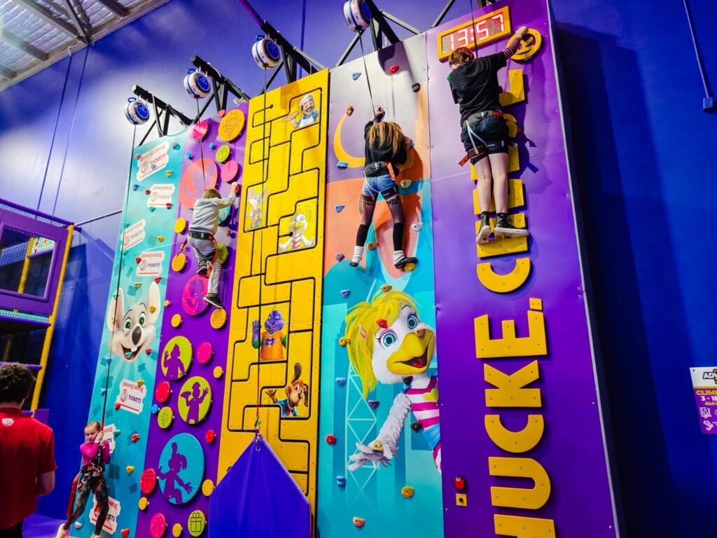 Chuck E. Cheese in Joondalup might be best known as a family entertainment centre packed with arcade games, pizza and party vibes, but it’s also home to an impressive climbing wall that’s perfect for active kids. The venue features five uniquely-themed climbing challenges equipped with TrueBlue auto-belay systems, so children aged 3 to 15 can safely scale colourful walls while racing against the clock or competing with friends. Each climber wears a harness and receives a safety briefing before they start, giving parents peace of mind as they watch from below. The climbing walls are just one part of Chuck E. Cheese’s massive Adventure Zone, which also includes a multi-level indoor Playground, slides, a ball pit, and over 100 arcade games. It’s a great option if you want to combine climbing with other activities in one visit โ kids can burn energy on the walls, then refuel with pizza and treats before diving back into the fun. The venue is open seven days a week until late, making it easy to fit into busy family schedules.