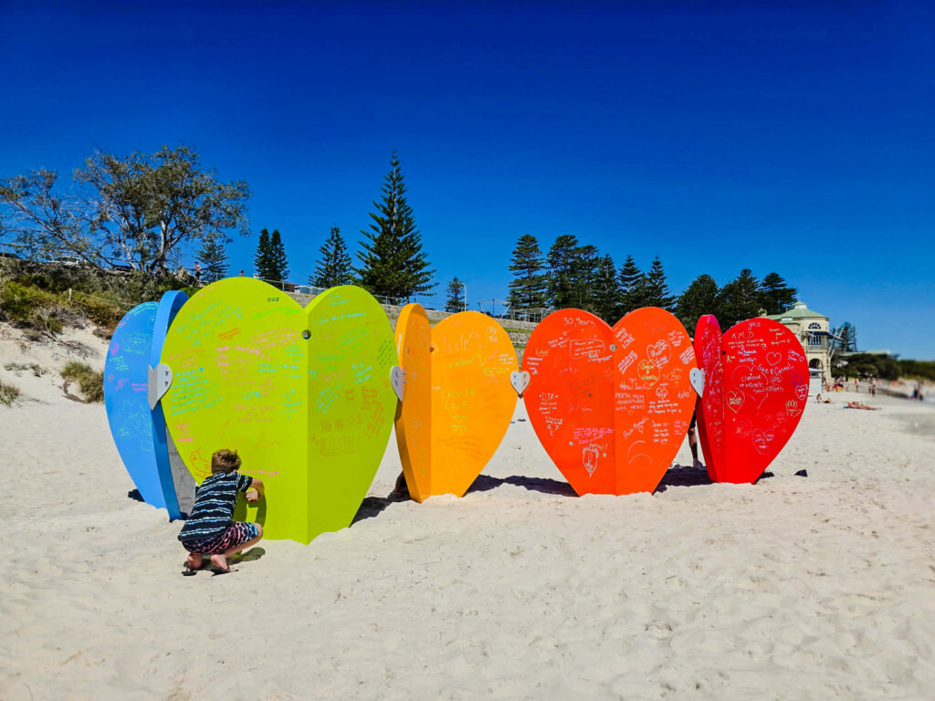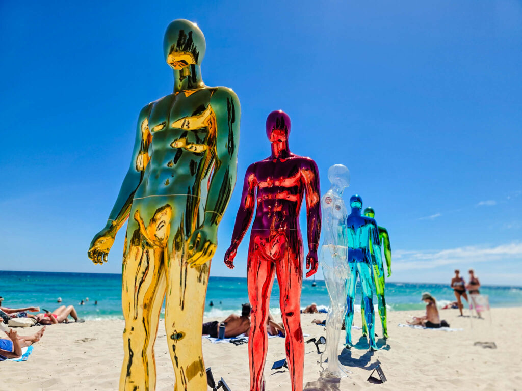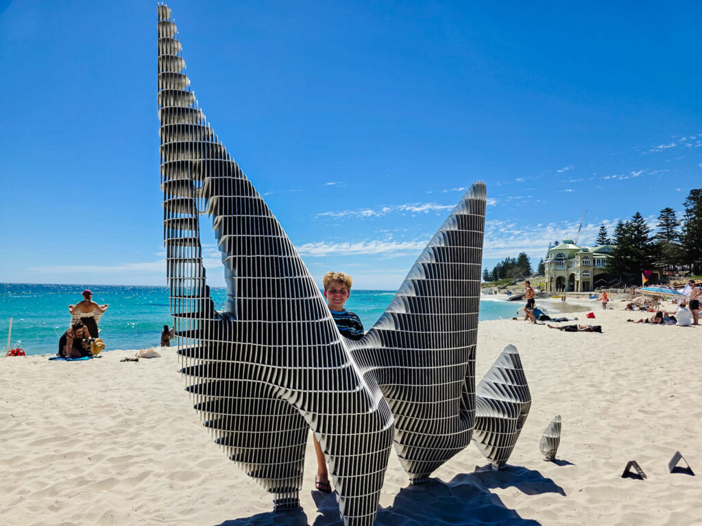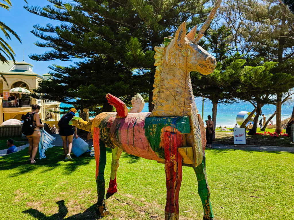 The sculptures are spread between Cottesloe and North Cottesloe, with many placed along the coastal path and others displayed directly on the beach. It makes the whole experience feel a bit like a treasure hunt as you wander along the coast spotting the next piece of art.