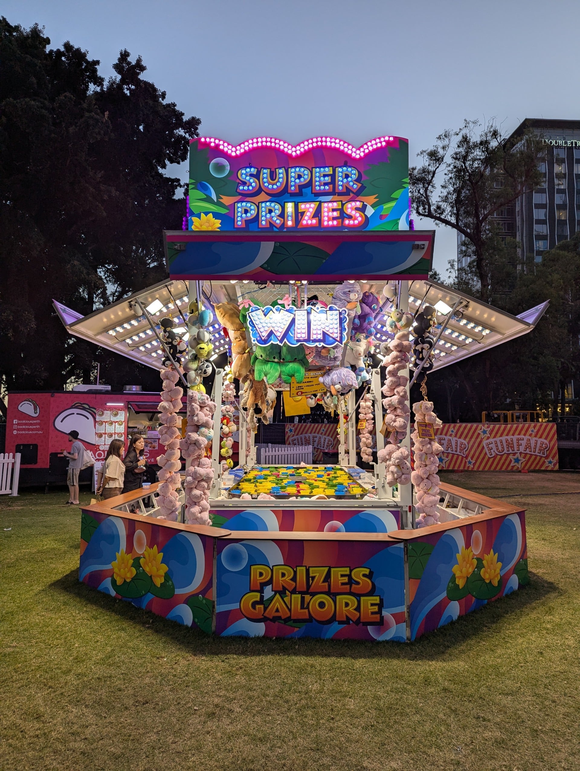 There are also six other sideshow games such as the childrenโs favourite Fishing Pool, Laughing Clowns, Waterbowls and Rabbit Shooting Galley.