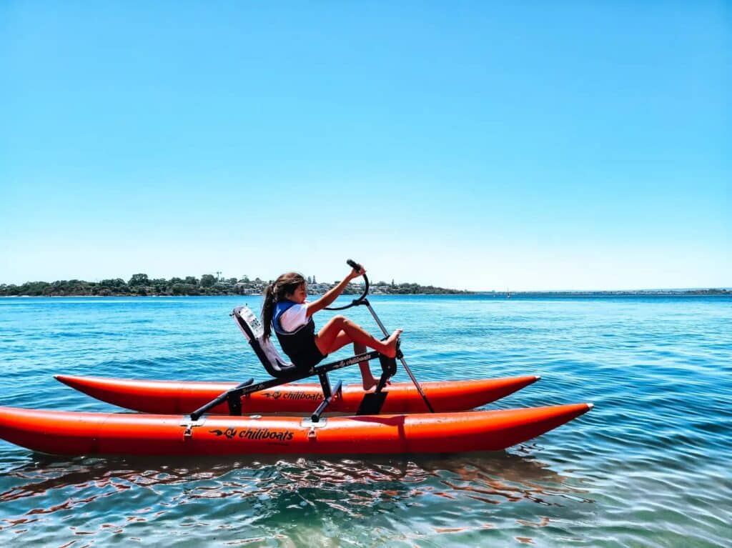 Each swan can hold two adults or an adult and child, with enough room for a small child up to around seven years old to sit between adults, making it a fun option for families with younger children who might not be ready for their own kayak or board. You pedal at your own pace, which means you can either take it easy and enjoy the scenery or work up a bit of a leg workout while the kids giggle and point out birds, boats and (if youโre lucky) dolphins. Hire is available for 30 minutes or an hour, with pricing listed per swan, not per person.