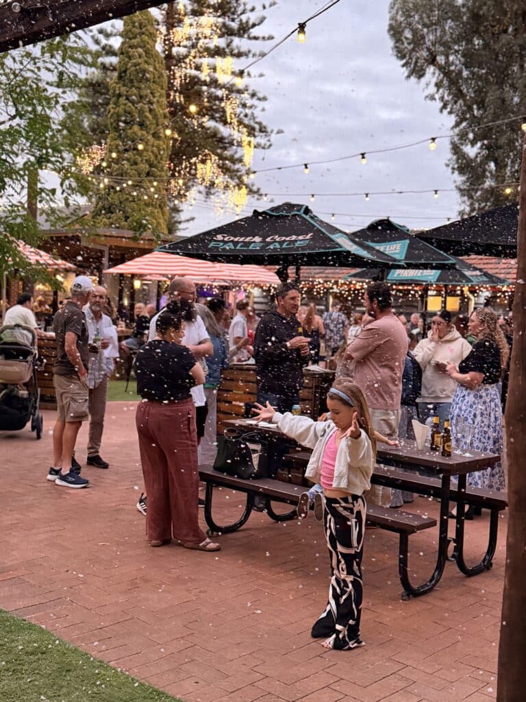 A cute caravan bar is set up serving alcohol and soft drinks, so adults can enjoy a quiet drink while the kids play nearby.