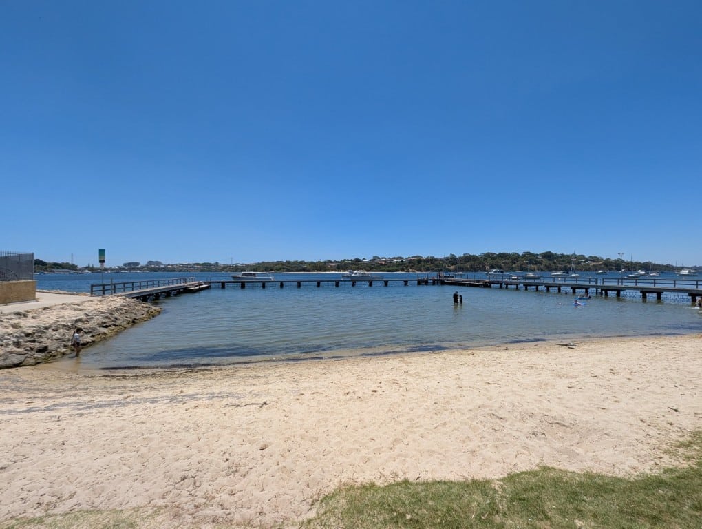 Bicton Baths is a beautiful, family-friendly swimming spot on the Swan River, offering calm, sheltered water and plenty of space for kids to play. The distinctive U-shaped jetty is a big hit with confident swimmers who love jumping in and climbing back up the ladders, while the shallow areas closer to shore are ideal for toddlers and less confident swimmers to paddle and splash.