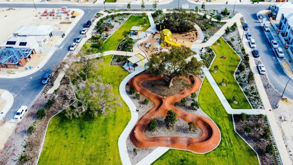 Honeycomb Park in Brabham is a buzzing community Playground that lives up to its name. Tucked within Peetโs Brabham Estate, not far from the Swan Valley and just around the corner from the much-loved Jungle Park, this 1.4 hectare green space is packed with play opportunities for kids of all ages, plus plenty to keep parents comfortable too.