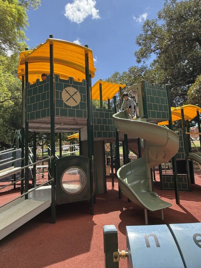 The main Playground, near the corner of Vincent and Throssell Streets, has a fantastic castleโthemed structure that immediately draws kids in. Little knights and princesses can climb up via ramps, stairs and platforms before choosing from curly slides and shorter, gentler slides that suit toddlers and preschoolers.