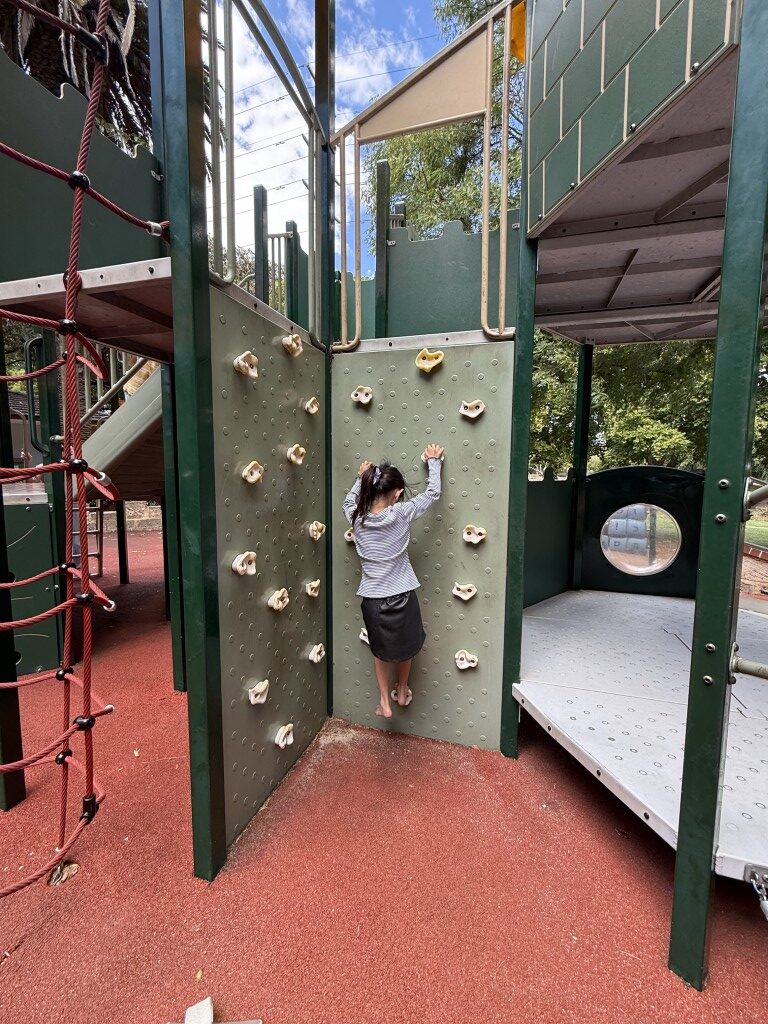 Around the โcastleโ youโll find plenty to challenge more confident climbers, including rope nets, a small rockโclimbing wall and other structures that encourage kids to scramble, balance and test themselves.