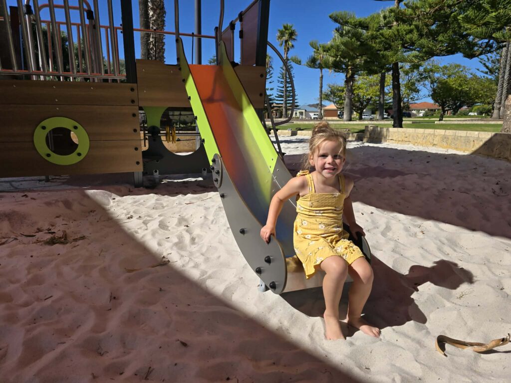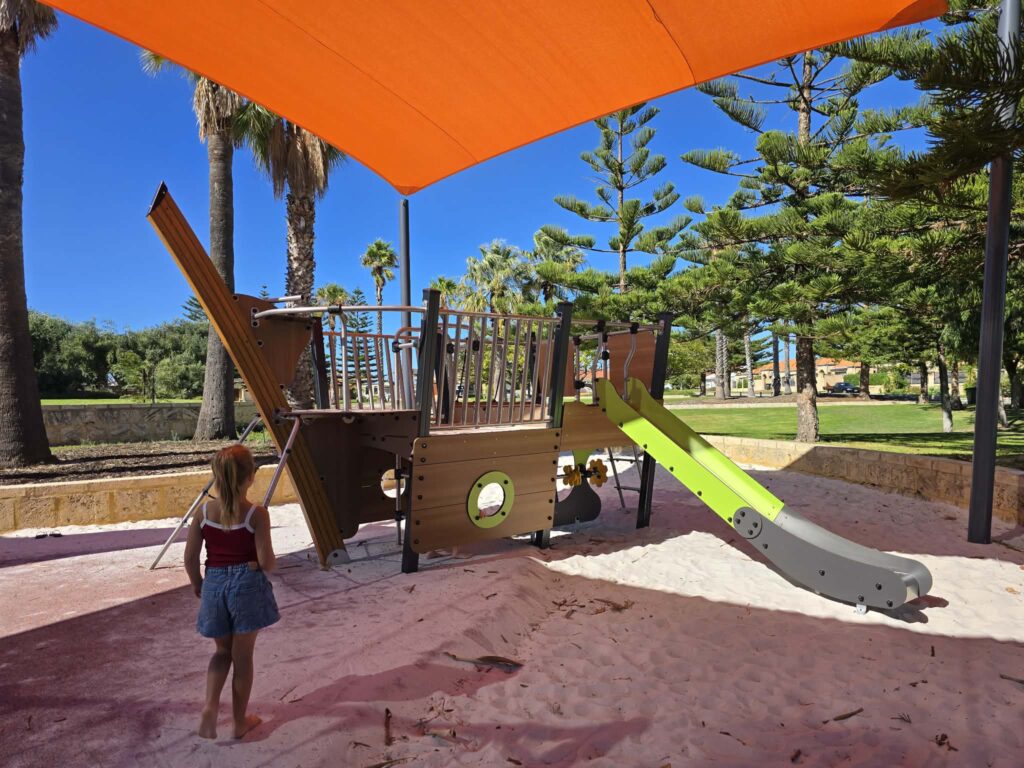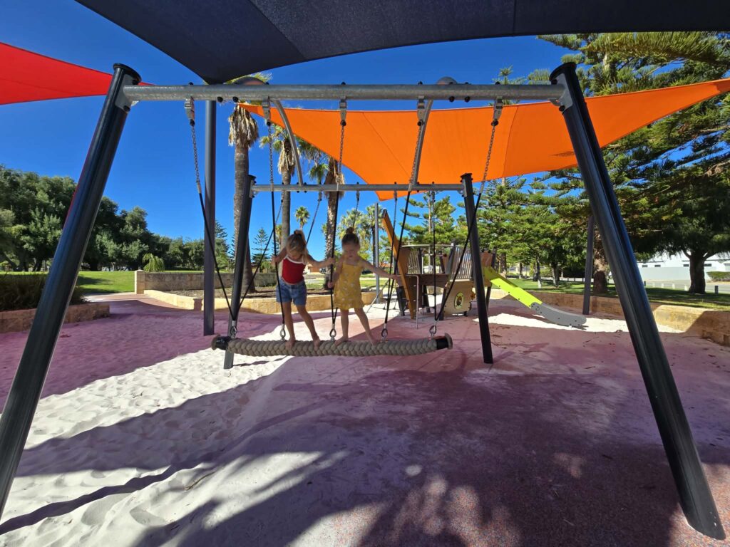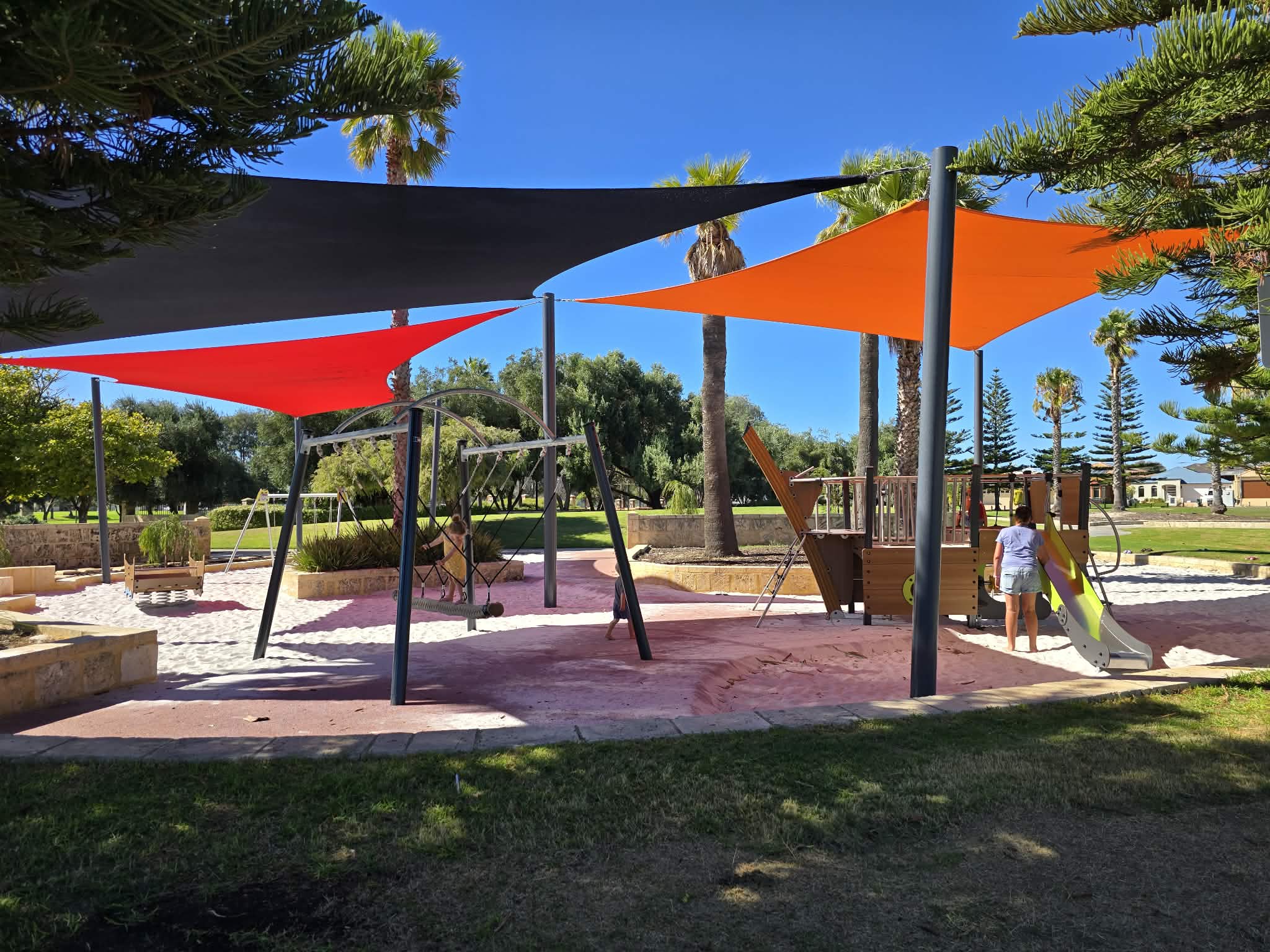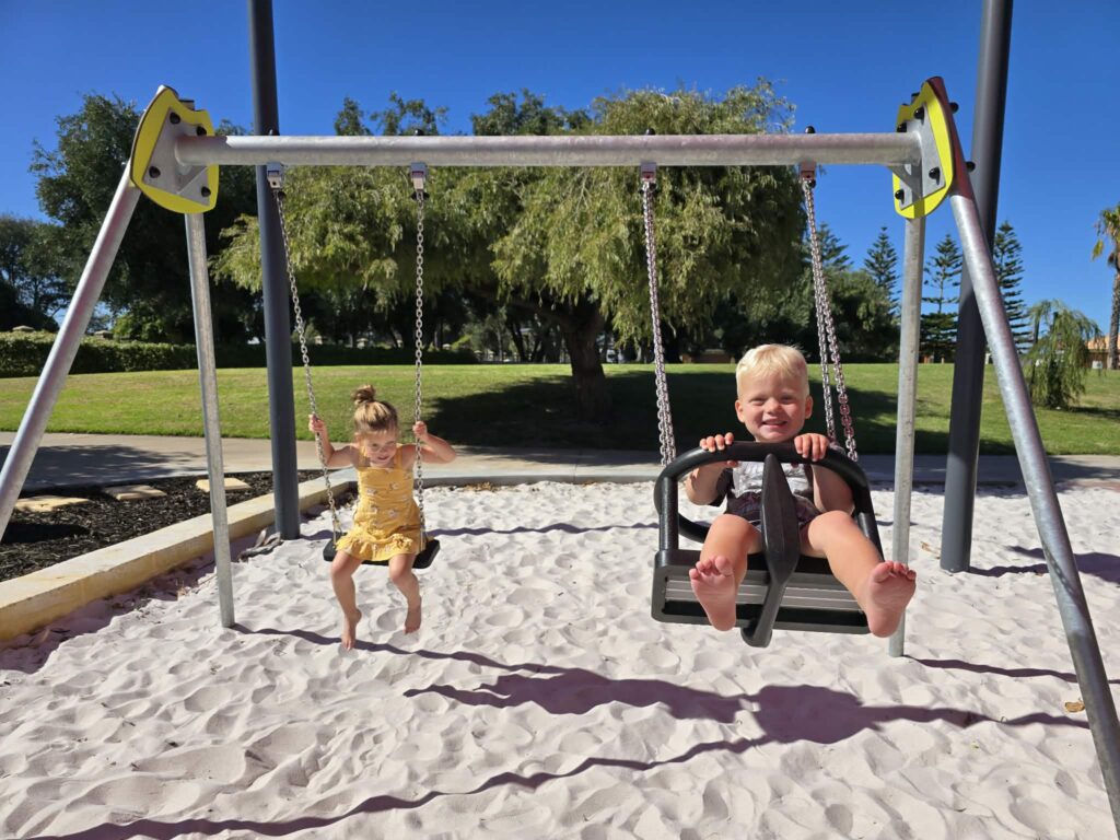 Surrounding the play area is a good amount of shade, which is a big plus on warm days, along with a grassed area that gives kids a bit of extra room to run around, kick a ball, or spread out a picnic rug. Itโs a great little spot for a simple outdoor playdate when you donโt need all the extras and just want somewhere pleasant and easy.
