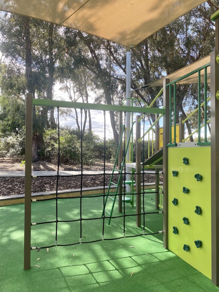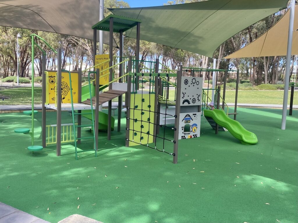 Shade sails cover sections of the play equipment, providing some relief on hot days, and soft-fall flooring underfoot adds an extra layer of safety and comfort for little ones. Surrounding the play space is a lovely grassy area, ideal for laying out a picnic rug, letting kids run around, or just relaxing between play sessions. Parking is mostly street parking, with only a small amount of space available close by, so itโs worth allowing a little extra time to find a spot. There are no toilets at the Playground, so plan ahead and factor this in if youโre visiting with young children.