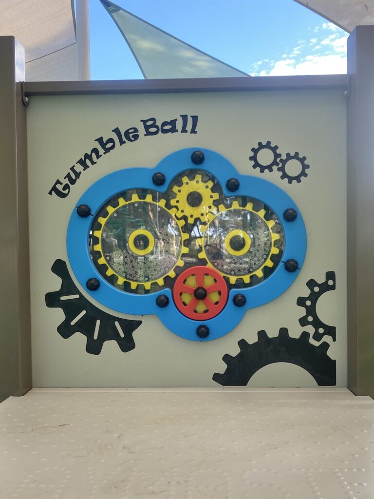 A tumble ball wall game offers another interactive activity that encourages focus and fine motor skills.