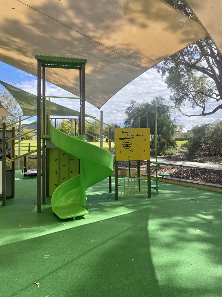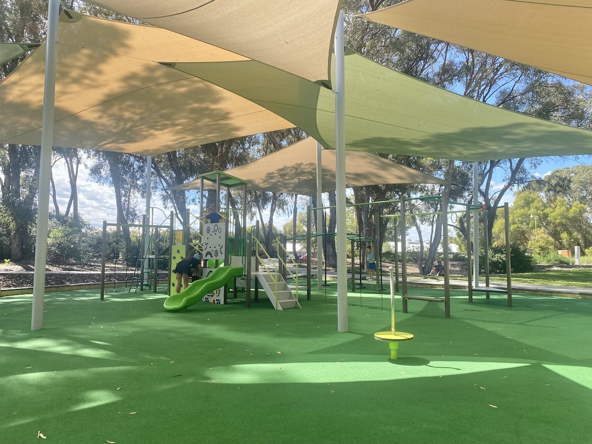 Shade sails cover sections of the play equipment, providing some relief on hot days, and soft-fall flooring underfoot adds an extra layer of safety and comfort for little ones. Surrounding the play space is a lovely grassy area, ideal for laying out a picnic rug, letting kids run around, or just relaxing between play sessions. Parking is mostly street parking, with only a small amount of space available close by, so itโs worth allowing a little extra time to find a spot. There are no toilets at the Playground, so plan ahead and factor this in if youโre visiting with young children.