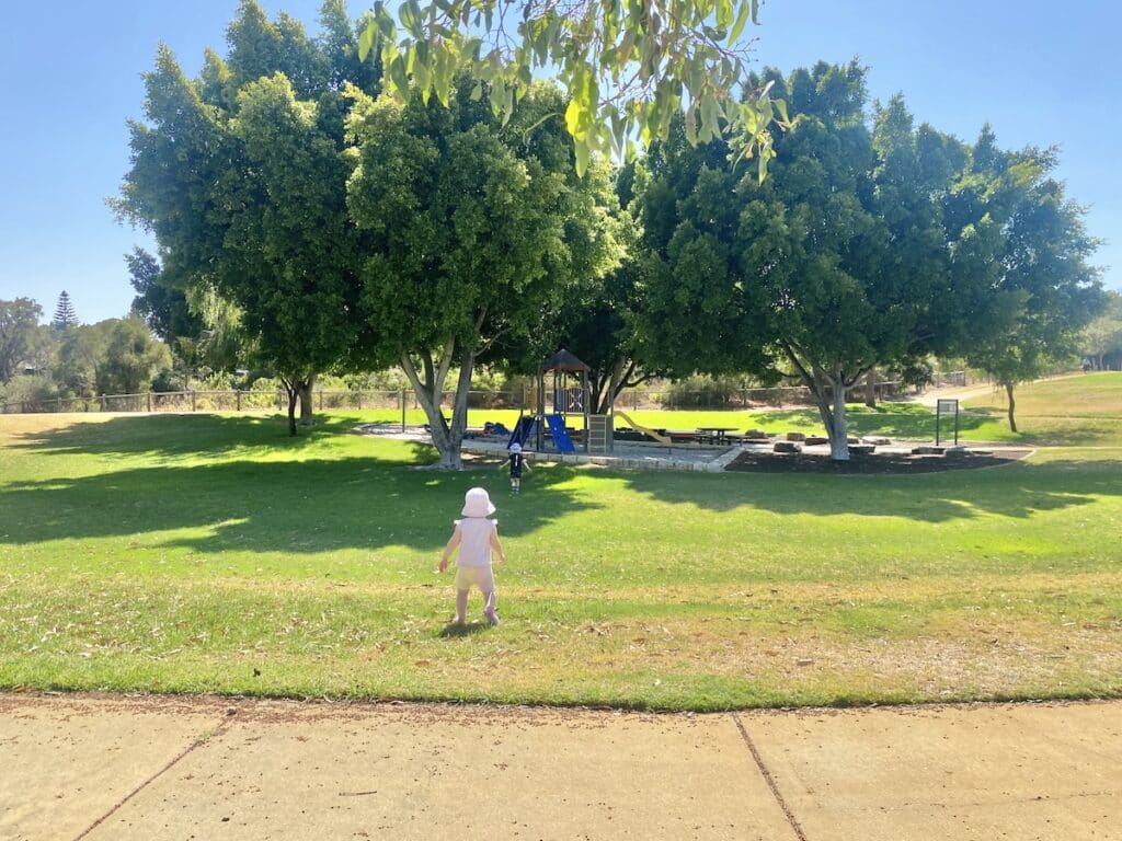 Manapouri Park Playground in Joondalup, is a lovely local gem for families, particularly on warm mornings when shade is essential. The park is dotted with mature trees that cast generous natural shade over much of the play area, helping it stay cool and comfortable as the day heats up. Itโs a great option for younger children who need a softer, more sheltered space to play.