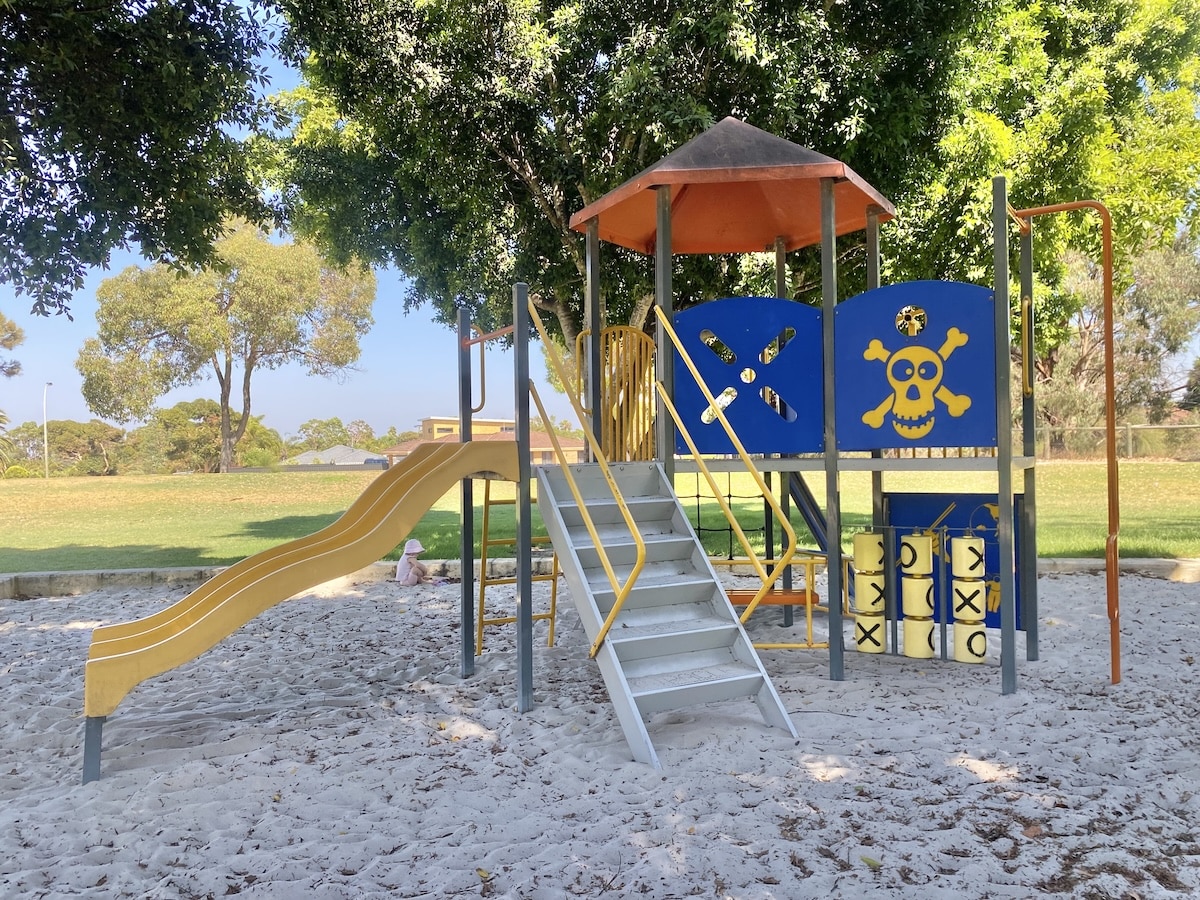 Manapouri Park Playground in Joondalup, is a lovely local gem for families, particularly on warm mornings when shade is essential. The park is dotted with mature trees that cast generous natural shade over much of the play area, helping it stay cool and comfortable as the day heats up. Itโs a great option for younger children who need a softer, more sheltered space to play.