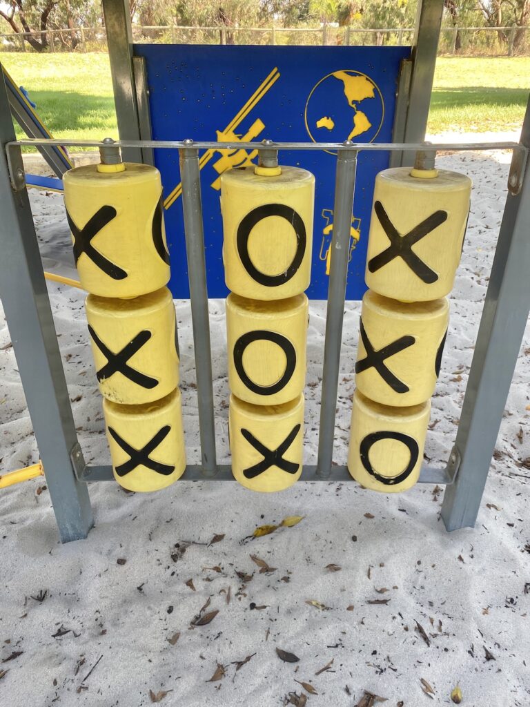 There are also tic-tac-toe game panels to spin, a little โshopโ window for imaginative play, a half fire pole for an extra bit of adventure, and a spy glass for spotting โshipsโ or โaliensโ across the park.