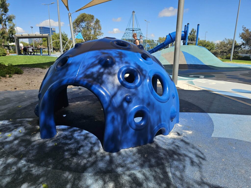 Optus Stadium Sensory Playground is a compact, fully fenced gem thatโs ideal for a play with the whole family – having elements to excite all ages. Designed with sensory play in mind, itโs one of those parks where you can easily lose an hour while the kids swing, climb and explore.