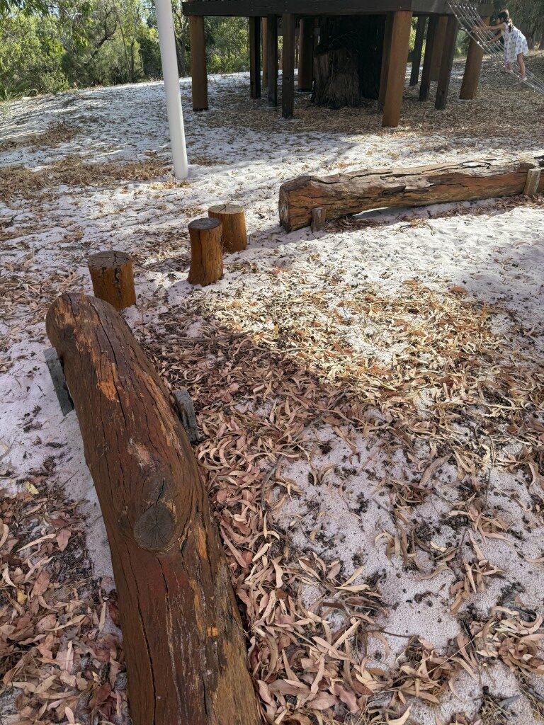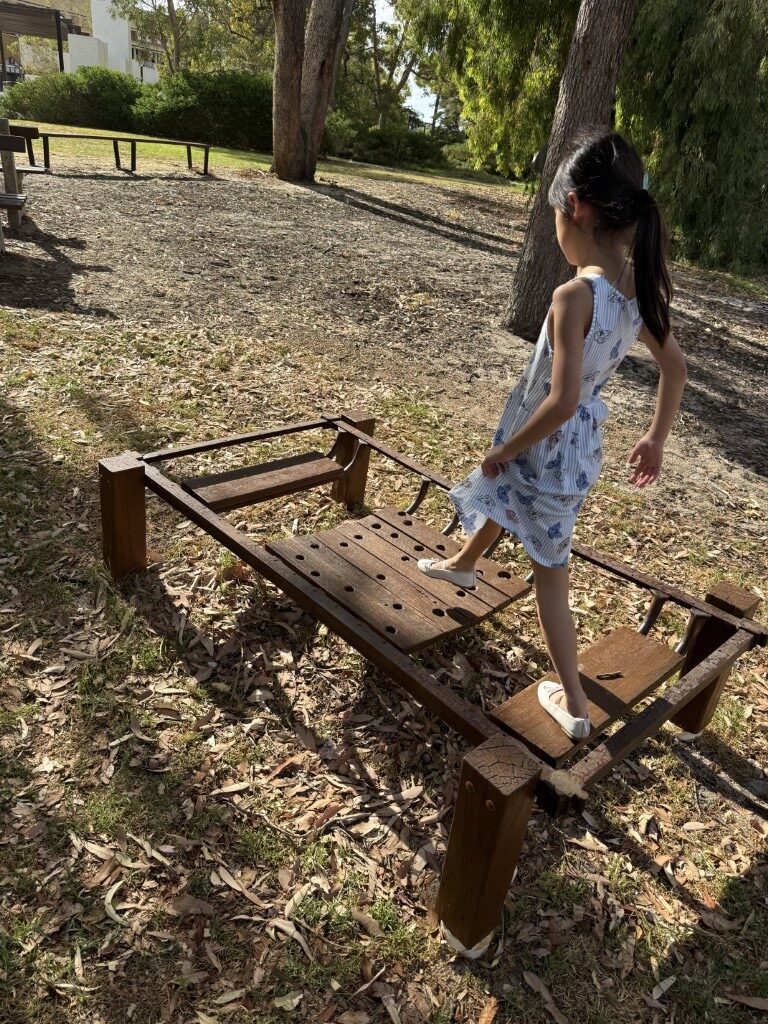 Around the play space there is plenty of informal and formal seating, with benches, logs and shady spots under the trees where adults can relax. Itโs a peaceful place to sit with a takeaway coffee while the kids explore, with birdsong adding to the atmosphere โ kookaburras were happily calling during our visit.