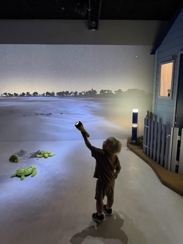 Little nature lovers will adore the Imagination Stop. In this space, kids can explore the effects of light pollution and learn about the journey of baby turtles to the ocean. They can even dress up as tiny turtles making their way to the sea. A large projector transforms the room into an atmospheric beach scene, complete with the sound of crashing waves and a virtual turtle migration. Itโ€™s immersive, gentle, and perfectly pitched for toddlers and preschoolers โ€“ educational without ever feeling like a lesson.
