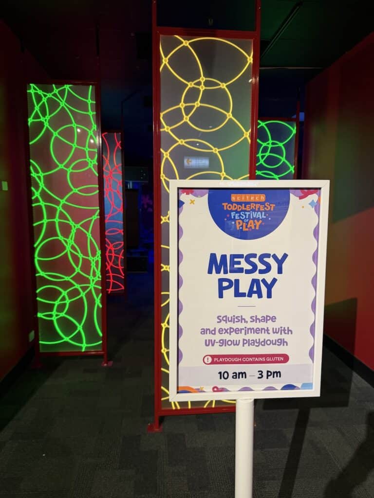 One of the highlights is the messy play station inside the Kaartadjin Koorliny exhibit โ€“ Scitechโ€™s collaborative space that encourages open exploration and hands-on learning. Here, three tables are set up with non-toxic, glow-in-the-dark playdough that little ones will be itching to squish, roll and mould. The station runs from 10:00โ€“15:00, giving staff time to regularly refresh the playdough and offer a helping hand when needed.